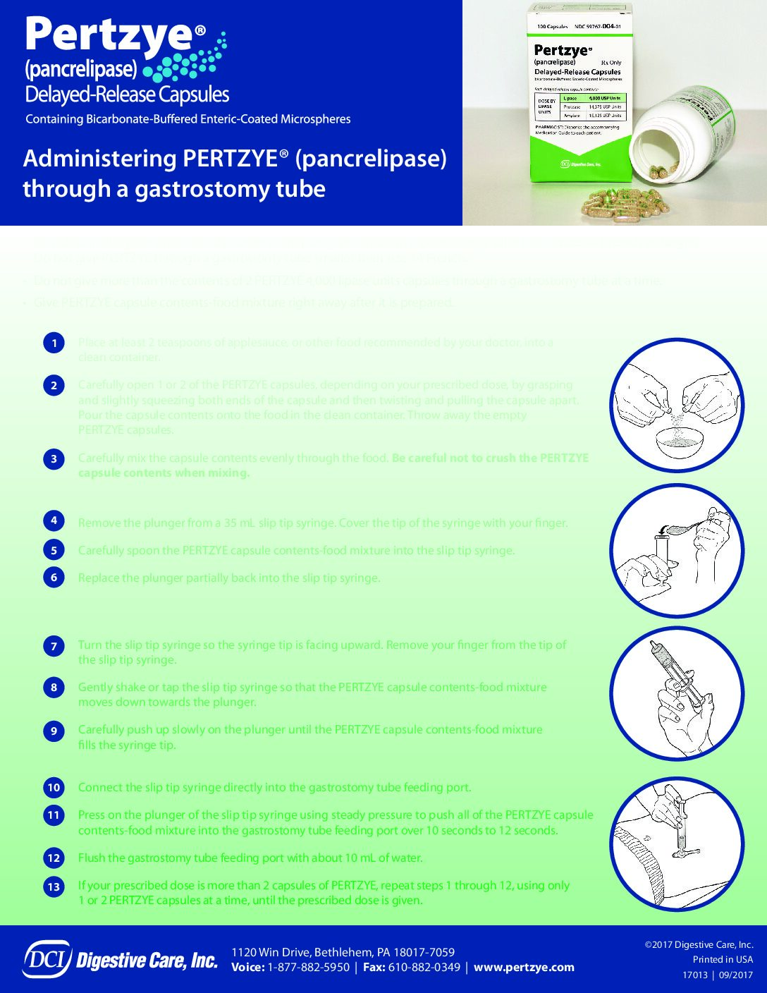 See the Instructions for Use at the end of the Medication Guide for detailed instructions about how to give PERTZYE by mouth and through a gastrostomy tube.